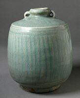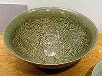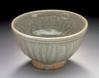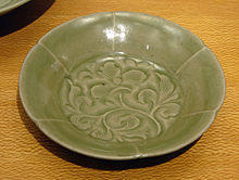 The earliest major type of celadon was Yue ware,[9] which was succeeded by a number of kilns in north China producing wares known as Northern Celadons, sometimes used by the imperial court. The best known of these is Yaozhou ware.[10] All these types were already widely exported to the rest of East Asia and the Islamic world.