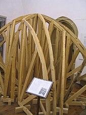 Centring[1], centre[2], centering[3], or center[4] is a type of falsework: the temporary structure upon which the stones of an arch or vault are laid during construction. Until the keystone is inserted an arch has no strength and needs the centring to keep the voussoirs in their correct relative positions. A simple centring without a truss is called a common centring.[3] A cross piece connecting centring frames is called a lag or bolst.[5]