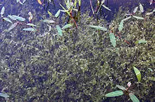 Most Characeae are found in fresh water, usually in still, clear water where they attach to the substrate by rhizoids. They can be pioneer colonizers or ephemerals.[7] They are usually found in low to medium nutrient-rich water and tend to disappear due to eutrophication. Some stoneworts can survive in brackish or maritime habitats and occur in ephemeral saline lakes in Australia that have twice the salinity of seawater.[8]