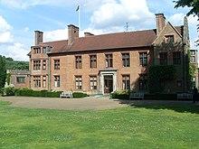 Churchill employed the architect Philip Tilden, who worked from 1922 to 1924 to modernise and extend the house.[97] Tilden was a "Society" architect who had previously worked for Churchill's friend Philip Sassoon at his Kent home, Port Lympne,[98] and had designed Lloyd George's house, Bron-y-de, at Churt.[18] The architectural style is vernacular. The house is constructed of red brick, of two storeys, with a basement and extensive attics.[5] The 18th-century doorcase in the centre of the entrance front was purchased from a London antiques dealer.[99] The architectural historian John Newman considered it, "large and splendid and out of place".[100] The garden wall on the Mapleton Road is modelled on that at Quebec House, the home of General Wolfe in nearby Westerham.[101]