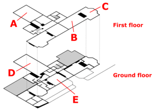 The opening of the house required the construction of facilities for visitors and a restaurant was designed by Philip Jebb, and built to the north of the house, along with a shop and ticket office.[86] Alterations have also been made to the gardens, for ease of access and of maintenance. The Great Storm of 1987 caused considerable damage, with twenty-three trees being blown down in the gardens.[87] Greater destruction occurred in the woodland surrounding the house, which lost over seventy percent of its trees.[88]