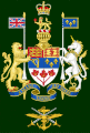 The rank insignia of the CWO is a simplified version of the 1957 coat of arms of Canada, worn on both forearms of the service dress tunic; in gold metal and green enamel miniature pins on the collar of the service dress shirt and outerwear coats (Army only); on CADPAT slip-ons worn in the middle of the chest, embroidered in tan (Army) or blue (Air Force) thread; and in pearl-grey thread on blue slip-ons on both shoulders of other uniforms (Air Force only).