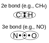 The molecule ClO2 has an odd number of valence electrons, and therefore, it is a paramagnetic radical. Its electronic structure has long baffled chemists because none of the possible Lewis structures is very satisfactory. In 1933, L. O. Brockway proposed a structure that involved a three-electron bond.[13] Chemist Linus Pauling further developed this idea and arrived at two resonance structures involving a double bond on one side and a single bond plus three-electron bond on the other.[14] In Pauling's view the latter combination should represent a bond that is slightly weaker than the double bond. In molecular orbital theory this idea is commonplace if the third electron is placed in an anti-bonding orbital. Later work has confirmed that the highest occupied molecular orbital is indeed an incompletely-filled antibonding orbital.[15]