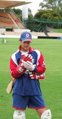 Read was selected to play for two tour matches for England between the Second and Third Tests. In the first, against Australia Chairman's XI, Read was dismissed for a duck. In the two-day match against Western Australia, Read scored 59 not out while Jones, playing as a batsman, went for a first ball duck.[7] Under increased pressure, Jones retained his place for the third Test but failed to score in either innings - the first and second ducks of his Test career - leading to Read being selected for the fourth Test. Though he struggled with the bat in the final two Tests, he took 6 catches in the first innings of the fourth Test, becoming only the 3rd player in Test history to take 6 dismissals in an innings twice.[8] Read repeated that performance with another 6 dismissals in the first innings of the 5th Test in Sydney, making him the first, and so far only, keeper in Test history to achieve the feat in successive Tests. For the subsequent one-day tournament, and the following World Cup, Read was overlooked for selection, with Paul Nixon taking over the wicketkeeper position. The following summer, the Test wicketkeeping position was given to Matt Prior, who scored a century on his Test debut and retained his place for the subsequent one-day matches.