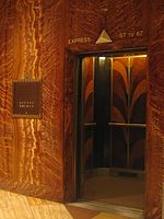 In January 1930, it was announced that the Chrysler Corporation would maintain offices in the Chrysler Building during Automobile Show Week,[92] and the first leases by outside tenants were announced in April 1930, before the building was officially completed.[93][1] The building was formally opened on May 27, 1930, in a ceremony that coincided with the 42nd Street Property Owners and Merchants Association's meeting that year. In the lobby of the building, a bronze plaque that read "in recognition of Mr. Chrysler's contribution to civic advancement" was unveiled. Former Governor Smith, former Assemblyman Martin G. McCue, and 42nd Street Association president George W. Sweeney were among those in attendance.[1][2] By June, it was reported that 65% of the available space had been leased.[94] By August, the building was declared complete, but the New York City Department of Construction did not mark it as finished until February 1932.[1]