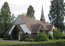 The church is 6 miles (10 km) south of J3 of the M3 and is close to the gates of the country's largest cemetery, on the A322 road.[2]