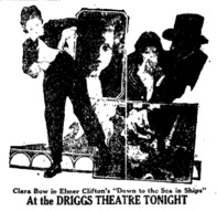 Down to the Sea in Ships, shot on location in New Bedford, Massachusetts and produced by independent "The Whaling Film Corporation", documented life, love, and work in the whale-hunter community. The production relied on a few less-known actors and local talents. It premiered at the Olympia Theater in New Bedford, on September 25, and went on general distribution on March 4, 1923. Bow was billed 10th in the film, but shone through:
