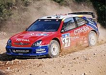 For 2003, McRae signed for Citroën, a team of winning pedigree due to its successes of the previous year with young Frenchman Sébastien Loeb but otherwise undertaking its first complete campaign at World Rally Championship level. McRae's second-place finish on his début in Monte Carlo alongside Loeb and Carlos Sainz whom, aboard the Xsara WRC, helped complete a 1–2–3 finish, transpired to be the finest result he would achieve for the team, for the season was to end with seventh in the drivers' championship, with no victories. Rule changes that were to be brought in for the 2004 season changed the previous practice of having three nominated points-scorers within a team to two. With Loeb partway through a multiple year contract, this meant the Citroën factory team, under Guy Frequelin's leadership, were forced to choose between dropping McRae or Sainz. With Sainz being the more successful of the two during the 2003 season, it was McRae who had to look elsewhere for 2004.[19] David Richards, McRae's former boss at Subaru, who had by now taken over WRC's commercial rights holders ISC and worried that the loss of a character like McRae would damage his ability to market the sport, set about trying to help McRae find a drive for 2004.[20] McRae was unable to find a team, and for the first time in over ten years he would not be competing in the World Rally Championship.