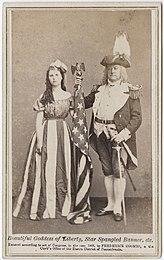 Carte de visite (c. 1866) featuring a woman dressed as Columbia and a man dressed as a Revolutionary War general