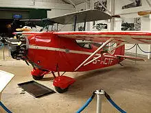 The prototype Swift (registered G-AARX) first flew at Hooton Park in January 1930.[1] The aircraft was a small single-seat, braced high-wing monoplane constructed of fabric-covered spruce wood frames.[2] The first Swift was powered by a 40 hp (30 kW) ABC Scorpion piston engine. After successful tests, seven more aircraft were built in 1930, powered by a 50 hp Salmson A.D.9 radial engine. Trials with Pobjoy P radial engine for use in air racing resulted in all the subsequent aircraft being powered by the Pobjoy R. The last three factory-built aircraft (sometimes called the Gipsy Swift) were fitted with de Havilland Gipsy engines – two with 120 hp (89 kW) Gipsy Major III, and one with a 130 hp (97 kW) Gipsy Major. One of the Gipsy Swifts, owned by the then-Prince of Wales and future King Edward VIII, won second place in the 1932 King's Cup Race while being flown by his personal pilot.[3] Postwar, surviving Swifts continued to compete successfully in UK air races into the mid-1950s.
