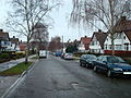 Coney Hall is one of many owner-occupied estates arising during the inter-War housing boom; it was built in the 1930s on hilly farmland south-east of West Wickham by the developers Morrell Brothers, who purchased Coney Hall Farm following the death of its owner Sir Henry Lennard in 1928.[1] In the previous decade, Lennard's opposition to road developments adjacent to West Wickham Common and Hayes Common had left the area accessible only by steep and narrow lanes.[1] In Coney Hall's early days London Transport refused to provide a bus service, and a free private coach service connected the estate to the nearest railway station, Hayes.[1] The quality of the new houses was not always that high, with a mortgage strike by Elsy Borders of 81 Kingsway in 1937 sparking sympathy strikes elsewhere, and contributing ultimately to an improvement in the legal standing of mortgage payers.[1][3][4] During World War II Canadian troops were billeted at Coney Hall.[1]