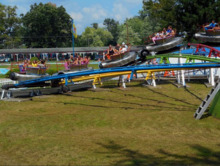 - 1997: Conneaut Lake Park is changed to a not-for-profit, public trust. The Blue Streak roller coaster is renovated and the park purchases 4 rides from the now closed Old Indiana Fun Park. The rides were the Super Round Up, Bumper cars, Ranger (Sky Thriller) and a Chance Turbo. The Turbo was never installed due to a dispute over ownership.[12] An 8-tub model Flying Scooters were also added. It was originally believed these came from Old Indiana as well, however a picture which recently surfaced proves Old Indiana's flying scooters were a 10-tub model, not an 8-tub. Also, then current owner Garry Harris goes to prison for tax evasion.[13]