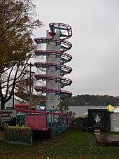 - 2014: The park opened in 2014 for its 122nd season on May 23.[16] The park was undergoing the possibility of a tax sale in September, as the park owes more than $910,000 in overdue property taxes.[17] Also, Toboggan is removed from the park in September 2014 and put up for sale. Witch's Stew, Musik Express, and the Kiddie Carousel are also put up for sale. All rides put up for sale are not sold and stay in operation the following year, other than the Toboggan which is kept in storage. In December, after many failed attempts of trying to appeal a Sheriff's sale of the park (with the sale then scheduled for December 5, 2014), the park files for bankruptcy to stop the sale.[18] The Super Round-Up base is also removed from the park. Splash City did not operate this season.