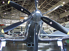 Aircraft equipped with contra-rotating propellers, also referred to as CRP,[1] coaxial contra-rotating propellers, or high-speed propellers, apply the maximum power of usually a single piston or turboprop engine to drive two coaxial propellers in contra-rotation. Two propellers are arranged one behind the other, and power is transferred from the engine via a planetary gear or spur gear transmission. Contra-rotating propellers are also known as counter-rotating propellers,[2][3] although counter-rotating propellers is much more widely used when referring to airscrews on separate shafts turning in opposite directions.