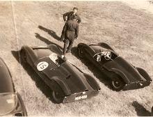 The first cars built by the Coopers were single-seat 500-cc Formula Three racing cars driven by John Cooper and Eric Brandon, and powered by a JAP motorcycle engine. Since materials were in short supply immediately after World War II, the prototypes were constructed by joining two old Fiat Topolino front-ends together.[2] According to John Cooper, the stroke of genius that would make the Coopers an automotive legend—the location of the engine behind the driver—was merely a practical matter at the time. As the car was powered by a motorcycle engine, they believed it was more convenient to have the engine in the back, driving a chain. In fact there was nothing new about 'mid' engined racing cars but there is no doubt Coopers led the way in popularising what was to become the dominant arrangement for racing cars.