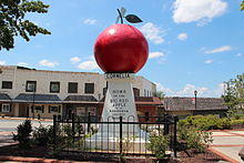 Through the years downtown Cornelia changed dramatically. As the railroad era passed the old depot was closed and boarded up, and the once central location was only a side street. A recent renovation has brought the depot back to life, and the quiet Big Red Apple is the focal point of a yearly festival[13] held the first week in October and a 5K road race held at the end of October.