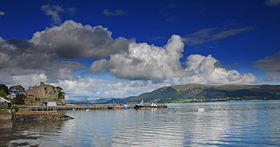 County Down takes its name from dún, the Irish word for dun or fort, which is a common root in Gaelic place names (such as Dundee, Dunfermline and Dumbarton in Scotland and Donegal and Dundalk in Ireland).[6] The fort in question was in the historic town of Downpatrick, originally known as Dún Lethglaise ("fort of the green side" or "fort of the two broken fetters").[7][8]