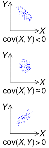 In probability theory and statistics, covariance is a measure of the joint variability of two random variables.[1] If the greater values of one variable mainly correspond with the greater values of the other variable, and the same holds for the lesser values (that is, the variables tend to show similar behavior), the covariance is positive.[2] In the opposite case, when the greater values of one variable mainly correspond to the lesser values of the other, (that is, the variables tend to show opposite behavior), the covariance is negative. The sign of the covariance therefore shows the tendency in the linear relationship between the variables. The magnitude of the covariance is not easy to interpret because it is not normalized and hence depends on the magnitudes of the variables. The normalized version of the covariance, the correlation coefficient, however, shows by its magnitude the strength of the linear relation.
