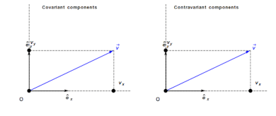 - A contravariant vector or tangent vector (often abbreviated simply as vector, such as a direction vector or velocity vector) has components that contra-vary with a change of basis to compensate. That is, the matrix that transforms the vector components must be the inverse of the matrix that transforms the basis vectors. The components of vectors (as opposed to those of covectors) are said to be contravariant. Examples of vectors with contravariant components include the position of an object relative to an observer, or any derivative of position with respect to time, including velocity, acceleration, and jerk. In Einstein notation, contravariant components are denoted with upper indices as in