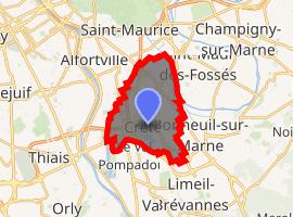 Créteil is a city in the south-eastern suburbs of Paris. It is watered by the Marne river which carries out its last loop before the junction with the Seine at the Charenton-le-Pont. The area is an alluvial plain eroded by the action of the Marne and the Seine. Bordering communes include Maisons-Alfort, Saint-Maur-des-Fossés, Bonneuil-sur-Marne, Limeil-Brévannes, Valenton, Choisy-le-Roi and Alfortville.