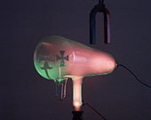 Crookes tubes were unreliable and temperamental. Both the energy and the quantity of cathode rays produced depended on the pressure of residual gas in the tube.[13][14][15] Over time the gas was absorbed by the walls of the tube, reducing the pressure.[16][13][14][15] This reduced the amount of cathode rays produced and caused the voltage across the tube to increase, creating more energetic cathode rays.[15] In Crookes X-ray tubes this phenomenon was called "hardening" because the higher voltage produced "harder", more penetrating X-rays; a tube with a higher vacuum was called a "hard" tube, while one with lower vacuum was a "soft" tube. Eventually the pressure got so low the tube stopped working entirely.[15] To prevent this, in heavily used tubes such as X-ray tubes various "softener" devices were incorporated that released a small amount of gas, restoring the tube's function.[13][14][15]
