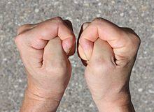 To cross one's fingers is a hand gesture commonly used to wish for luck. Occasionally it is interpreted as an attempt to implore God for protection.[1] The gesture is referred to by the common expressions "cross your fingers", "keep your fingers crossed", or just "fingers crossed". The act of crossing one's fingers mainly belongs to Christianity. The earliest use of the gesture had two people crossing their index fingers to form a cross.