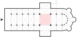In Early Medieval churches, the crossing square was often used as a module, or a unit of measurement. The nave and transept would have lengths that were a certain multiple of the length of the crossing square.[4]