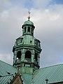 Over the crossings of the end transepts are, one at each end, squat octagonal towers, surmounted by large gilt ball-and-spike finials