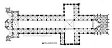 In the Western churches, a cruciform architecture usually, though not exclusively, means a church built with the layout developed in Gothic architecture. This layout comprises the following: