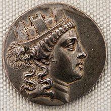 Romans knew Cybele as Magna Mater ("Great Mother"), or as Magna Mater deorum Idaea ("great Idaean mother of the gods"), equivalent to the Greek title Meter Theon Idaia ("Mother of the Gods, from Mount Ida"). Rome officially adopted her cult during the Second Punic War (218 to 201 BC), after dire prodigies, including a meteor shower, a failed harvest and famine, seemed to warn of Rome's imminent defeat. The Roman Senate and its religious advisers consulted the Sibylline oracle and decided that Carthage might be defeated if Rome imported the Magna Mater ("Great Mother") of Phrygian Pessinos.[42] As this cult object belonged to a Roman ally, the Kingdom of Pergamum, the Roman Senate sent ambassadors to seek the king's consent; en route, a consultation with the Greek oracle at Delphi confirmed that the goddess should be brought to Rome.[43] The goddess arrived in Rome in the form of Pessinos' black meteoric stone. Roman legend connects this voyage, or its end, to the matron Claudia Quinta, who was accused of unchastity but proved her innocence with a miraculous feat on behalf of the goddess. Publius Cornelius Scipio Nasica, supposedly the "best man" in Rome, was chosen to meet the goddess at Ostia; and Rome's most virtuous matrons (including Claudia Quinta) conducted her to the temple of Victoria, to await the completion of her temple on the Palatine Hill. Pessinos' stone was later used as the face of the goddess' statue.[44] In due course, the famine ended and Hannibal was defeated.