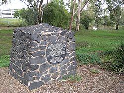 Dalby was founded in the early 1840s at a place known locally as "The Crossing" on Myall Creek, a tributary of the Condamine River. The first settler was Henry Dennis, who explored the region and chose land for himself and others in the locality.[7] Today an obelisk in Edward Street denotes the location where Dennis camped.[5] A small settlement was founded to assist travellers heading north to nearby Jimbour Station. The explorer Ludwig Leichhardt visited the area in 1844, on his way to Port Essington.[8]