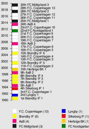 | F.C. Copenhagen | 1st | 1992–93 | 1992–93 |