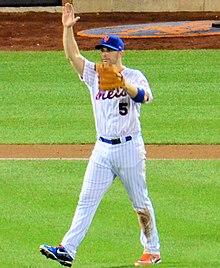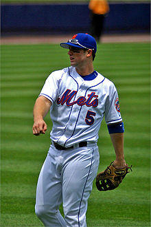 David Allen Wright (born December 20, 1982) is an American former professional baseball third baseman who played his entire 14-year Major League Baseball (MLB) career for the New York Mets. He was drafted by the Mets in 2001 MLB draft and made his MLB debut on July 21, 2004 at Shea Stadium. Wright was nicknamed "Captain America" after his performance in the 2013 World Baseball Classic.[1]