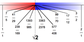 This cut represents the irrational number √2 in Dedekind's construction. The essential idea is that we use a set , which is the set of all rational numbers whose squares are less than 2, to "represent" number √2, and further, by defining properly arithmetic operators over these sets (addition, subtraction, multiplication, and division), these sets (together with these arithmetic operations) form the familiar real numbers.