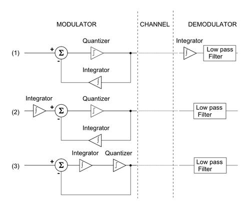 - The linearity property of integration, , makes it possible to move the integrator, which reconstructs the analog signal in the demodulator section, in front of the delta modulator.