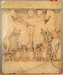 In the Roman period, Demeter became conflated with the Roman agricultural goddess Ceres under the Interpretatio graeca.[63] The worship of Demeter was formally merged with that of Ceres around 205 BC, along with the ritus graecia cereris, a Greek-inspired form of cult, as part of Rome's general religious recruitment of deities as allies against Carthage, towards the end of the Second Punic War. The cult originated in southern Italy (part of Magna Graecia) and was probably based on the Thesmophoria, a mystery cult dedicated to Demeter and Persephone as "Mother and Maiden". It arrived along with its Greek priestesses, who were granted Roman citizenship so that they could pray to the gods "with a foreign and external knowledge, but with a domestic and civil intention".[64] The new cult was installed in the already ancient Temple of Ceres, Liber and Libera, Rome's Aventine patrons of the plebs; from the end of the 3rd century BC, Demeter's temple at Enna, in Sicily, was acknowledged as Ceres' oldest, most authoritative cult center, and Libera was recognized as Proserpina, Roman equivalent to Persephone.[65] Their joint cult recalls Demeter's search for Persephone, after the latter's abduction into the underworld by Hades (or Pluto). At the Aventine, the new cult took its place alongside the old. It made no reference to Liber, whose open and gender-mixed cult continued to play a central role in plebeian culture, as a patron and protector of plebeian rights, freedoms and values. The exclusively female initiates and priestesses of the new "greek style" mysteries of Ceres and Proserpina were expected to uphold Rome's traditional, patrician-dominated social hierarchy and traditional morality. Unmarried girls should emulate the chastity of Proserpina, the maiden; married women should seek to emulate Ceres, the devoted and fruitful Mother. Their rites were intended to secure a good harvest, and increase the fertility of those who partook in the mysteries.[66]
