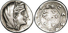 In the mysteries of Pheneos in Arcadia, Demeter was known as Cidaria.[36] Her priest would put on the mask of Demeter, which was kept in a secret place. The cult may have been connected with both the underworld and a form of agrarian magic.[37]