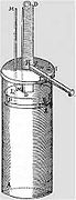 Steam-driven water-lifting machine by Papin in 1707, reconstruction, from Nouvelle manière d'élever l'eau par la force du feu. Musée des Arts et Métiers