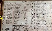 A record exists for the burial of a “Denys Papin” in an 18th-century Register of Marriages & Burials[8] which originally came from St Bride's Church, Fleet Street, London, but which as of 2016 is stored in the London Metropolitan Archives. The record states that Denys Papin was buried at St Bride's on 26 August 1713 – just a few days after his 66th birthday – and that he was buried in the Lower Ground, one of the two burial areas belonging to the church at the time.