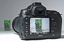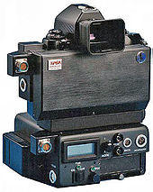 In 1986, the Kodak Microelectronics Technology Division developed a 1.3 MP CCD image sensor, the first with more than 1 million pixels. In 1987, this sensor was integrated with a Canon F-1 film SLR body at the Kodak Federal Systems Division to create an early DSLR camera.[24] The digital back monitored the camera body battery current to sync the image sensor exposure to the film body shutter.[25][26] Digital images were stored on a tethered hard drive and processed for histogram feedback to the user. This camera was created for the U.S. Government, and was followed by several other models intended for government use, and eventually a commercial DSLR, launched by Kodak in 1991.[27][28][29]