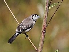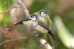 The double-barred finch (Stizoptera bichenovii) is an estrildid finch found in dry savannah, tropical (lowland) dry grassland and shrubland habitats in northern and eastern Australia. It is sometimes referred to as Bicheno's finch or as the owl finch, the latter of which owing to the dark ring of feathers around the face.