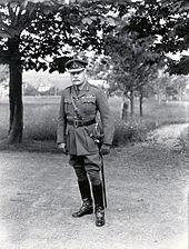 By 1909 it seemed likely to Haldane and Haig that an Anglo-German War loomed and Haig was at first reluctant to accept appointment as Chief of the General Staff in India.[77] He passed the Director of Staff Duties job to his loyal follower Brigadier-General Kiggell (later Chief of Staff BEF), to whom he wrote with "advice" every fortnight. Haig, who had been knighted for his work at the War Office, was promoted to lieutenant-general in November 1910.[78] In India he had hoped to develop the Indian General Staff as part of the greater Imperial General Staff, and to organise despatch of Indian troops to a future European War. A plan he envisaged for mobilising the Indian army to send to Europe in the event of war there was vetoed by Viceroy Lord Hardinge. In the event an Indian Corps would serve on the Western Front early in the conflict, and Indian troops were also used in comparatively small formations the Middle East.[79]