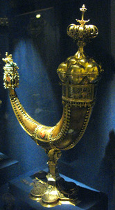 Lavishly decorated drinking horns in the Baroque style, some imitating cornucopias, some made from ivory, including gold, silver and enamel decorations continued to be produced as luxury items in 19th to early 20th century imperial Austria and Germany.[29]