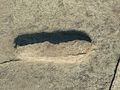 Dunadd is a rocky crag that may have been one time an island and now lies inland near the River Add, from which it takes its name, a little north of Lochgilphead (NR 836 936). The surrounding land, now largely reclaimed, was formerly boggy and known as the Mòine Mhòr 'Great Moss' in Gaelic. This no doubt increased the defensive potential of the site.[3] Detailed analysis of sea-level changes in the region argue that the Dun was an island or promontory into historic times, and that receding sea levels left the fortification open to siege and seizure in the 6th to 7th centuries[4]