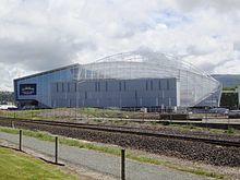 Sport is catered for in Dunedin by the floodlit rugby and cricket venues of Forsyth Barr Stadium and University Oval, Dunedin, respectively, the new Caledonian Ground football and athletics stadium near the University at Logan Park, the large Edgar Centre indoor sports centre, the Dunedin Ice Stadium, and numerous golf courses and parks. There are also the Forbury Park horseracing circuit in the south of the city and several others within a few kilometres. St Clair Beach is a well-known surfing venue, and the harbour basin is popular with windsurfers and kitesurfers. Dunedin has four public swimming pools: Moana Pool, Port Chalmers Pool, Mosgiel and St Clair Salt Water Pool.