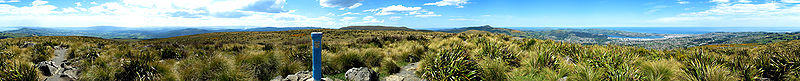 Dunedin's hinterland encompasses a variety of different landforms. To the southwest lie the Taieri Plains, the broad, fertile lowland floodplains of the Taieri River and its major tributary the Waipori. These are moderately heavily settled, and contain the towns of Mosgiel, and Allanton.[56] They are separated from the coast by a range of low hills rising to some 300 metres (980 ft). Inland from the Taieri Plain is rough hill country. Close to the plain, much of this is forested, notably around Berwick and Lake Mahinerangi, and also around the Silverpeaks Range which lies northwest of the Dunedin urban area.[57] Beyond this, the land becomes drier and opens out into grass and tussock-covered land. A high, broad valley, the Strath-Taieri lies in Dunedin's far northwest, containing the town of Middlemarch, one of the area's few concentrations of population.