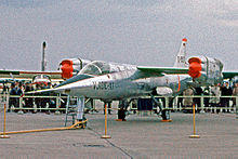 Accordingly, a pair of prototype aircraft, known as the VJ 101 C, were developed; these were powered by the lighter RB145 turbojet engine, which was mounted in swivelling nacelles instead.[13][12] However, development of the VJ 101 C would not be straightforward; one major complication was the changing requirements of the BMVg, who decided to switch the aircraft's envisioned mission profile from the interceptor role to a more general fighter instead, which imposed a requirement for it to be capable of longer low altitude flight endurance, amongst other performance attributes.[14] The new proposal had merged the characteristics of earlier Bölkow, Heinkel and Messerschmitt designs into a sleek, streamlined platform. The VJ 101 C bore some similarities in appearance to the American Bell XF-109, both aircraft having a comparable configuration in terms of possessing paired engines fitted within swivelling nacelles which were positioned at their wingtips. In addition to the wingtip engines, two further lift jets were installed within the fuselage, which functioned to supplement the main engines during hovering flight.