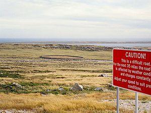 East Falkland was also the location of the bulk of the land-based action in the Falklands War. As a result, some areas of the "Camp" in East Falkland are still heavily mined. Areas that saw intensive combat included Goose Green, San Carlos, Mount Longdon and the Two Sisters ridge.[9]