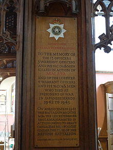 In September 1938 the 2nd Battalion was moved from Colchester to the British Concession of the International Settlement in Shanghai. In August 1940 the battalion was posted from China to Malaya where it was attached to 11th Indian Infantry Division based in North West Malaya. In December 1941 the Japanese Army invaded Malaya after landing in southern Thailand. The 2nd East Surreys suffered tremendous casualties during the defence and retreat from this part of Malaya. The battalion was amalgamated with the 1st Battalion, Leicestershire Regiment (in 1946 re-titled Royal Leicestershire Regiment) to form the British Battalion (Malaya 1941) on 19 December 1941. This unit fought gallantly throughout the rest of the short campaign until the surrender of the British Army at Singapore in February 1942.[43]