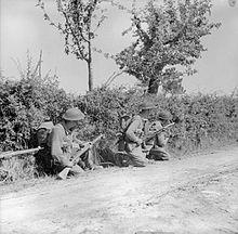 Armstrong remained in command until April 1942 when he was posted to command the 70th (Young Soldiers) Battalion.[48][54] Lt Col H.A.B. Bruno took command in April 1942 and led the battalion in action in North Africa in March, but was killed in action during the attack on Djebel Djaffa in April.[55] He was succeeded by Lt Col R O V Thompson, who had served with the 1st and 2nd Battalions before the war, appointed from a posting in the RAF to command the 1/6th for the final phase of the Tunisian Campaign. He subsequently led the battalion into action in Italy in the crossing of the River Rapido and the capture of Cassino. He, too was killed in action when his Jeep was blown up by a mine near Tivoli on 7 June 1944.[56] Colonel C G S McAlester took command until February 1945.[57] For the final months of the war, until August 1945, the battalion was led by Lt Col A G H Culverhouse, who had previously served with the 1/6th and had been wounded at Dunkirk.[58][59]